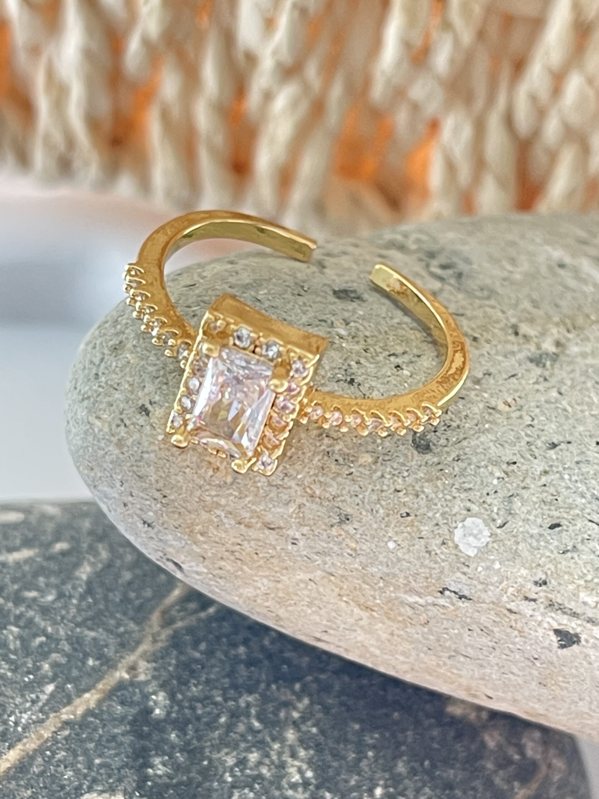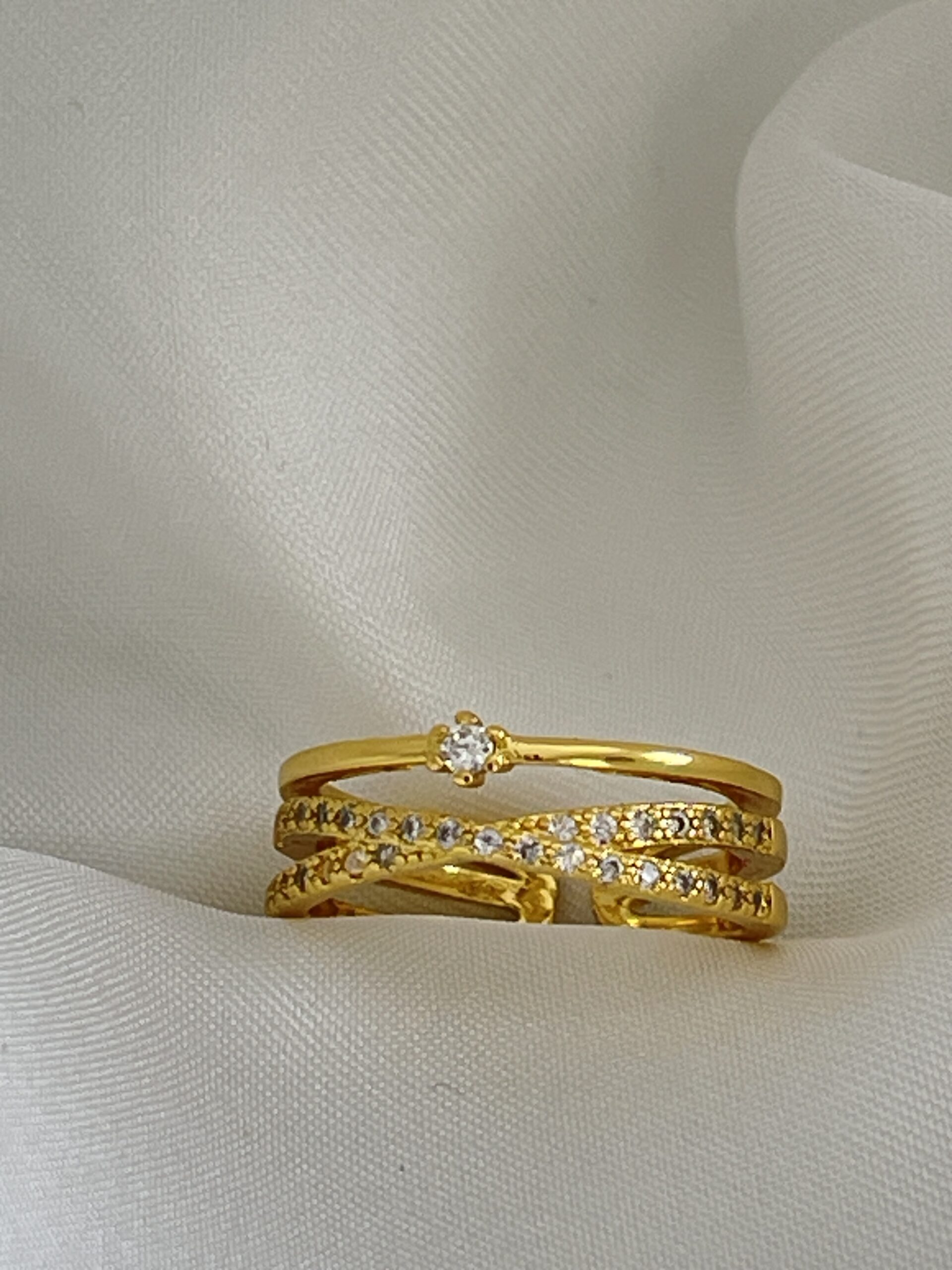 material: copper with Zirconia, gold plated, classification: open cuff style ring, wt: 9gm, Modern and elegant aesthetic...
