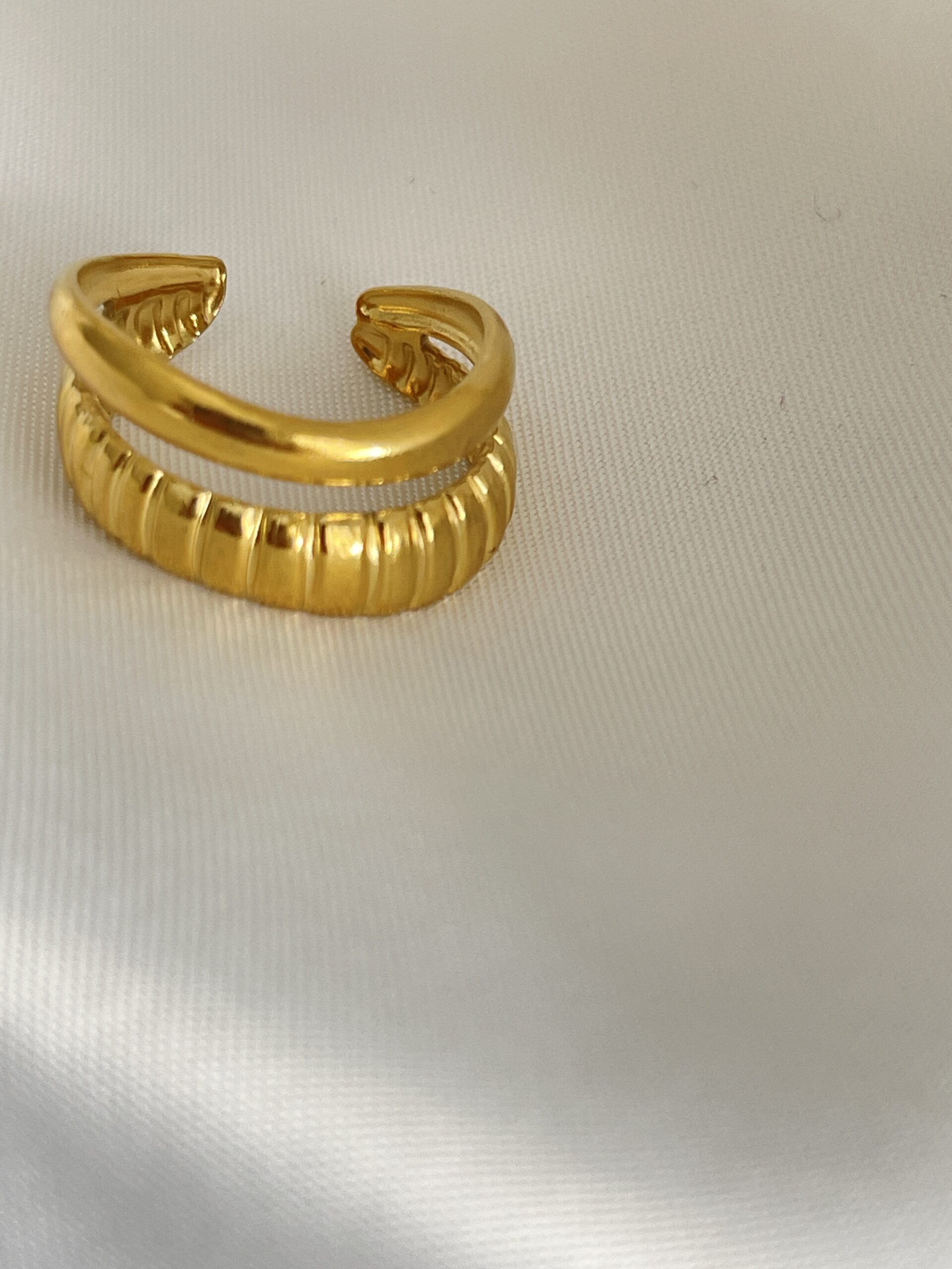 material: Stainless Steel, 18K gold plated, Classification: open adjustable ring, Wt: 2.6gm, Sculptural design with modern and...