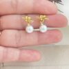 Material : Stainless Steel with Artificial pearl, Classification: Drop earring, 18K gold plated, wt:4.6g, Size: 16mmx18.3mm