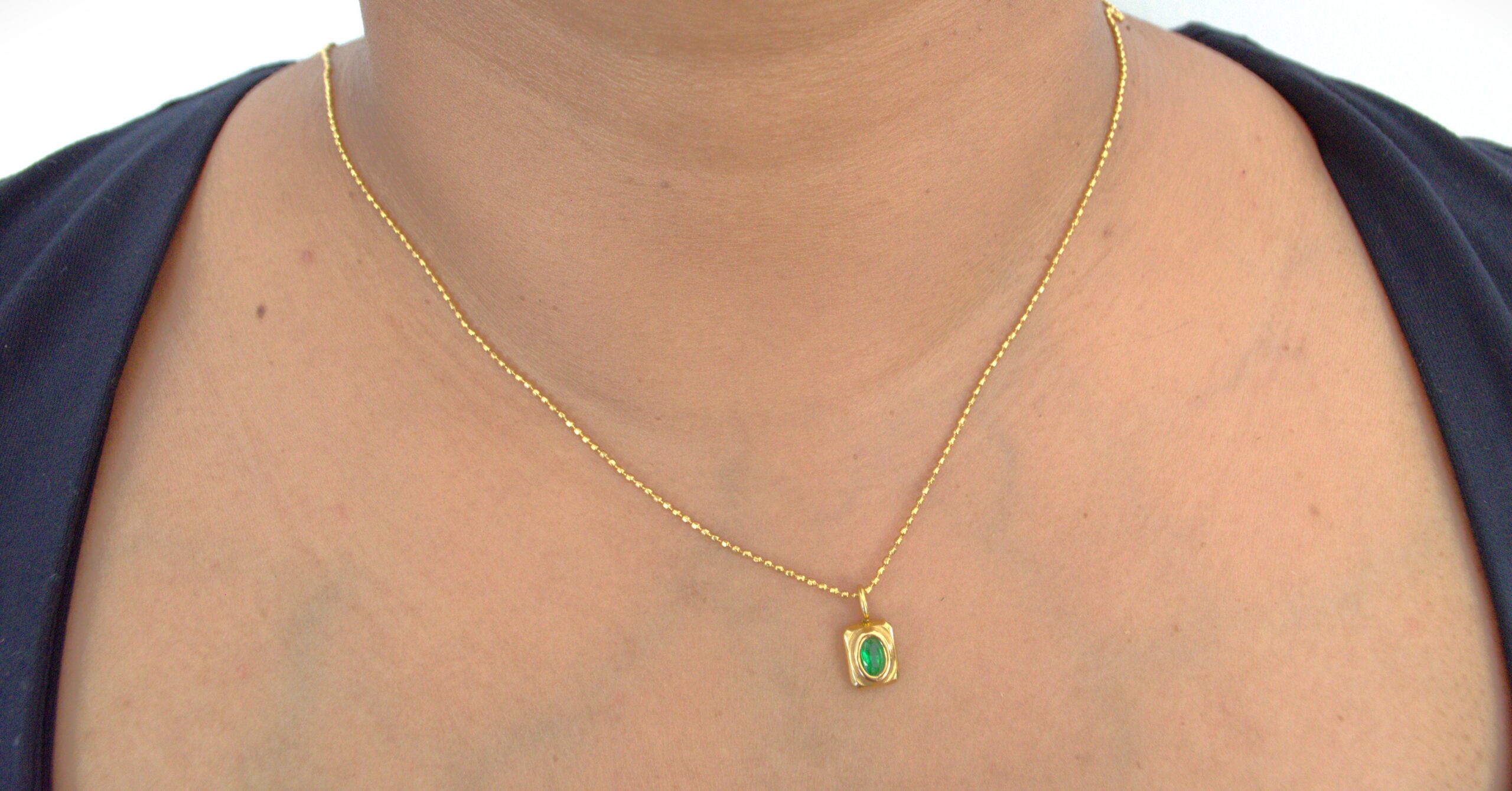 Material: Stainless Steel, 18 K Gold plated with Emerald, Chain: Ball Chain, wt 10 gm