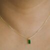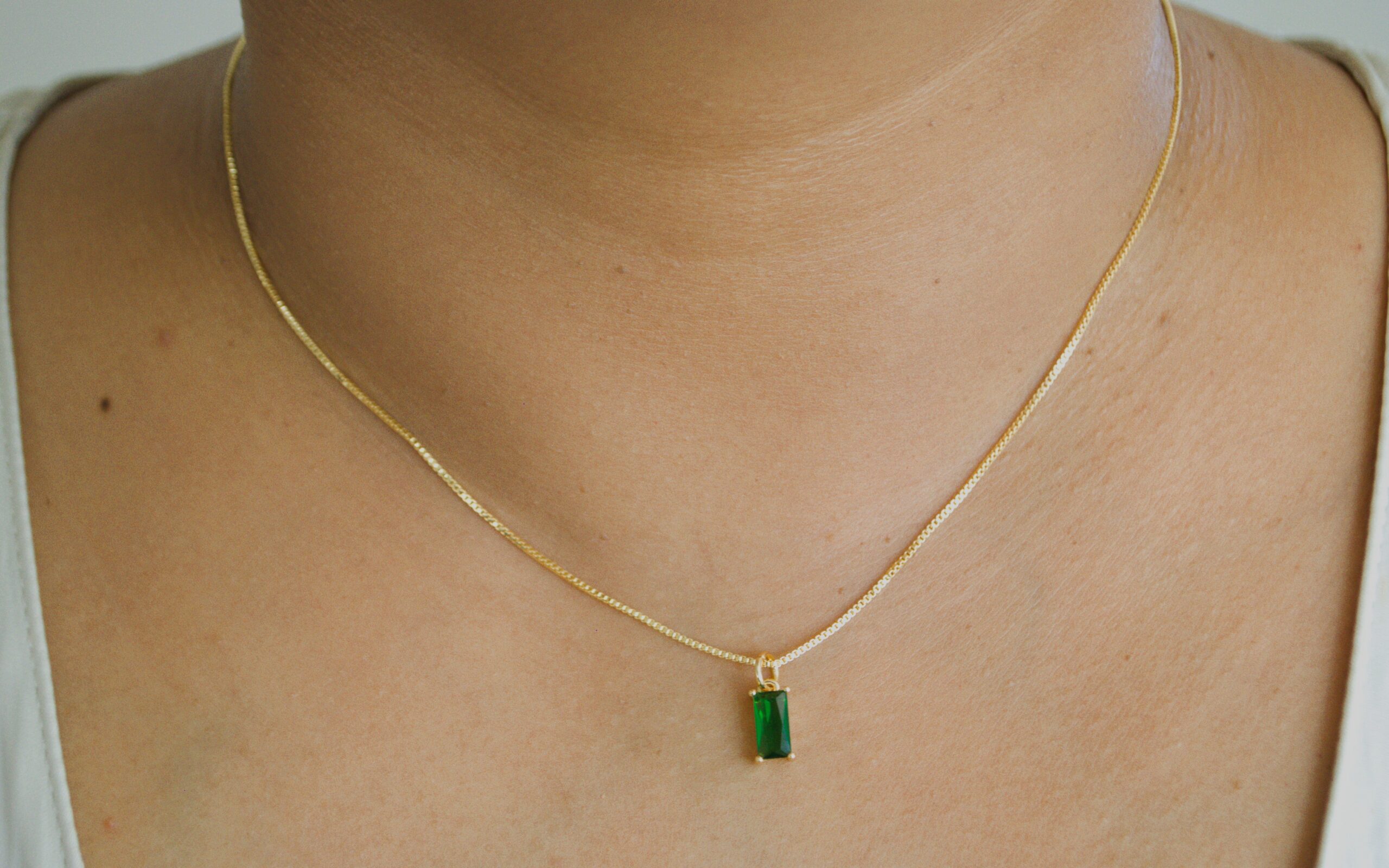 Material: Copper, 14K gold plated, classification: pendant Necklace with Emerald inlay, Chain: box chain, length 39cm, Pendant size:0.75×0.4 cm