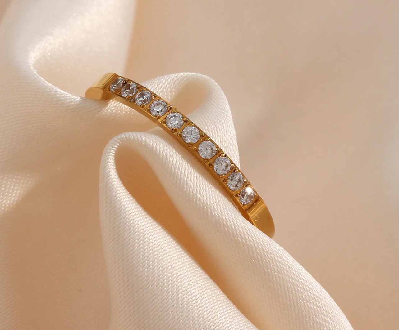 material : Stainless steel with Zirconia, 18K gold plated, Minimalistic everyday wear piece perfect for stacking with others or wear alone as statement piece, wt: 4.5gm