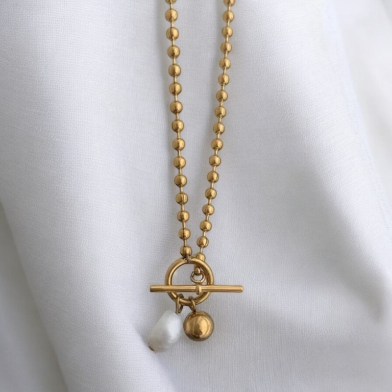 Material: Stainless steel, 18K gold plated, Classification:Ball chain,