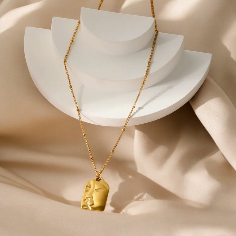 material: Stainless steel, 18K gold plated. Classification: Marina style pendant necklace.Chain: 44cm. Pendant: 2.3cmx1.5cm, total wt: 6.1gm
