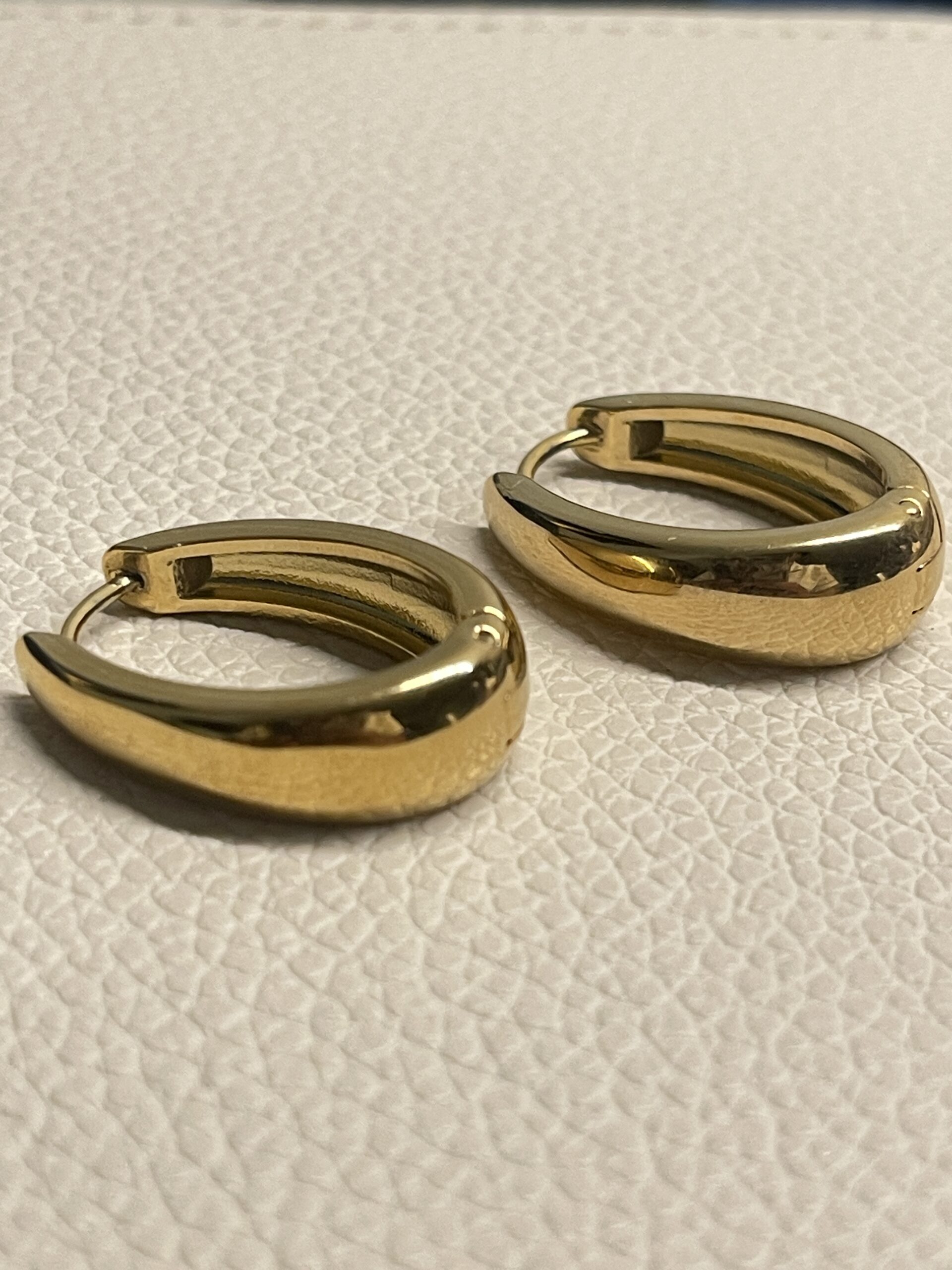 material: Stainless Steel, Classification: hoop earring, 18K gold plated, size 23mmx16.6mm wt 7.3g