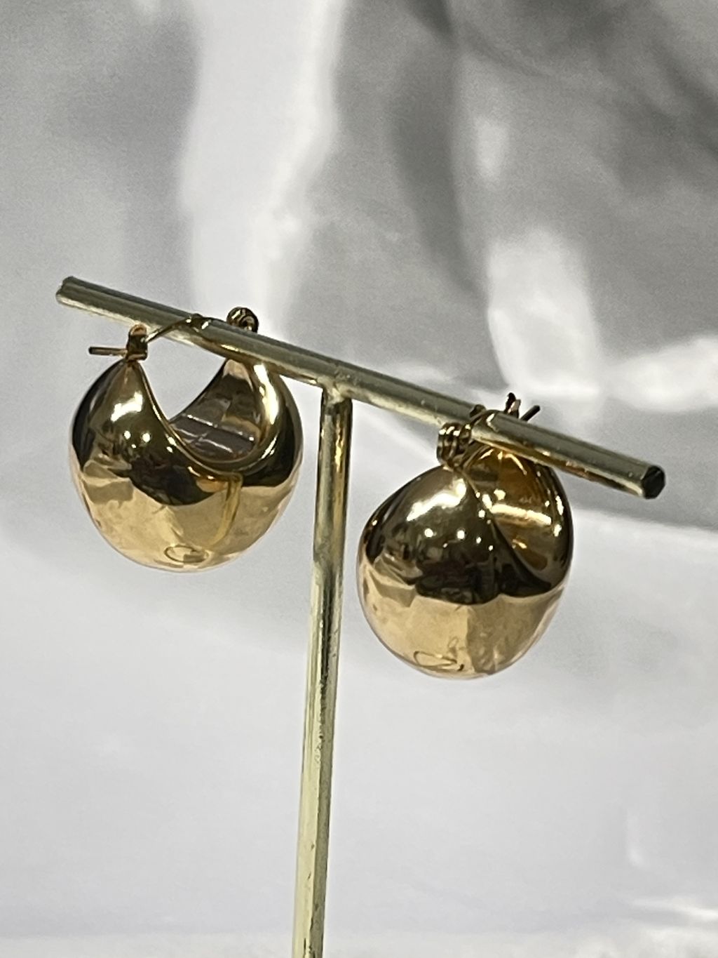 Material: Stainless Steel, Classification: Hoop Earrring, 18 K gold plated, wt 14.5g, size 2.5cmx2.5cm