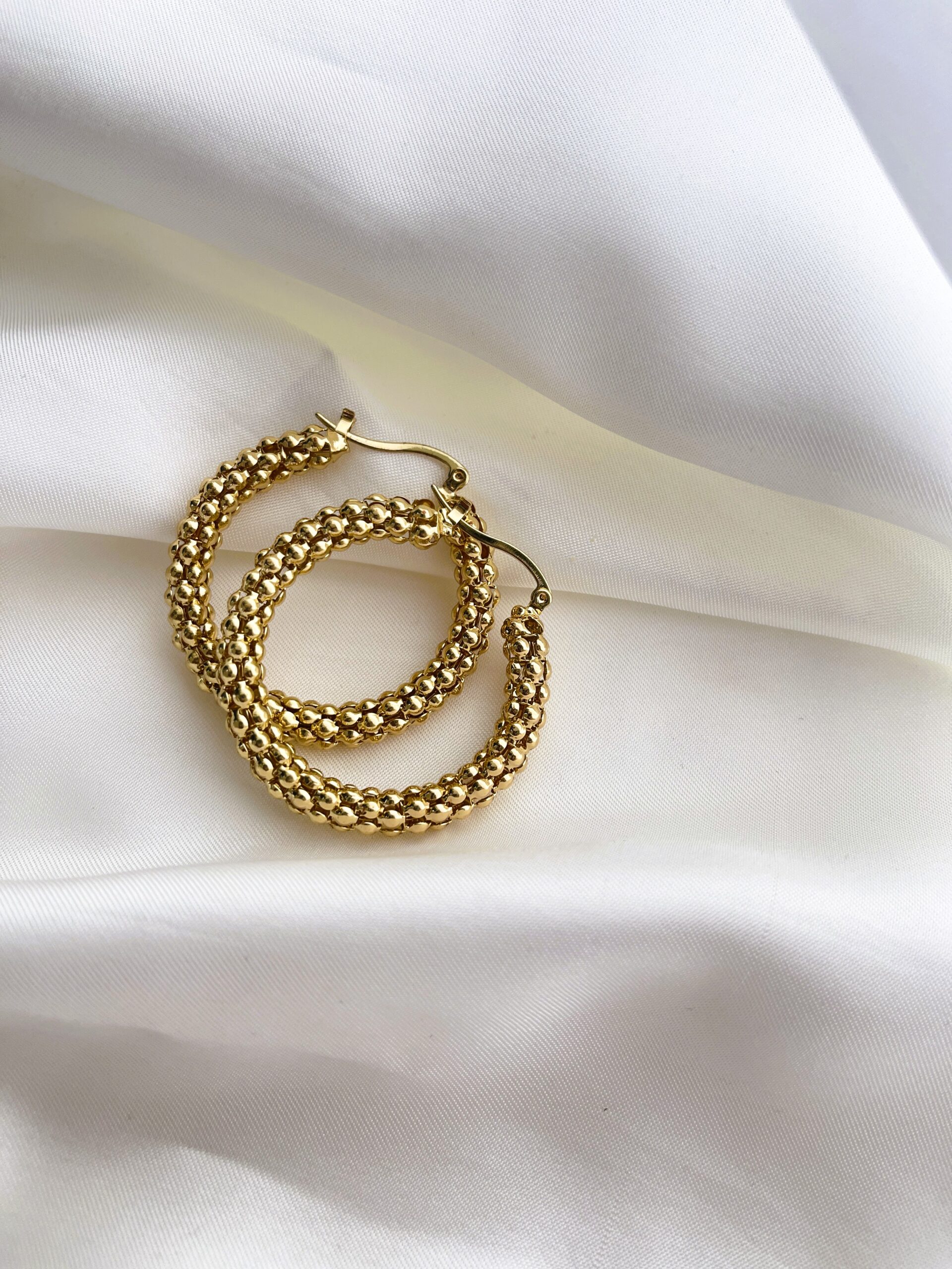 Material: Stainless Steel with 18 K gold plated, Classification: Hoop Earring. Size 5.5cmx5.5cm, wt: 26gm
