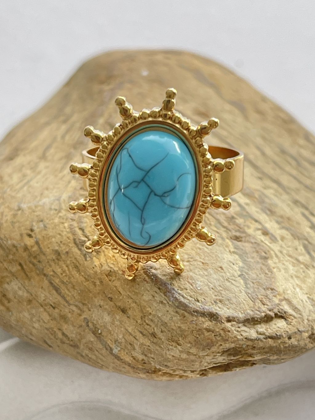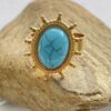 material: stainless steel with Turquoise, 14K gold plated. Classification: Open ring, wt: gm, The vintage -inspired aesthetic piece perfect for bold statement look.