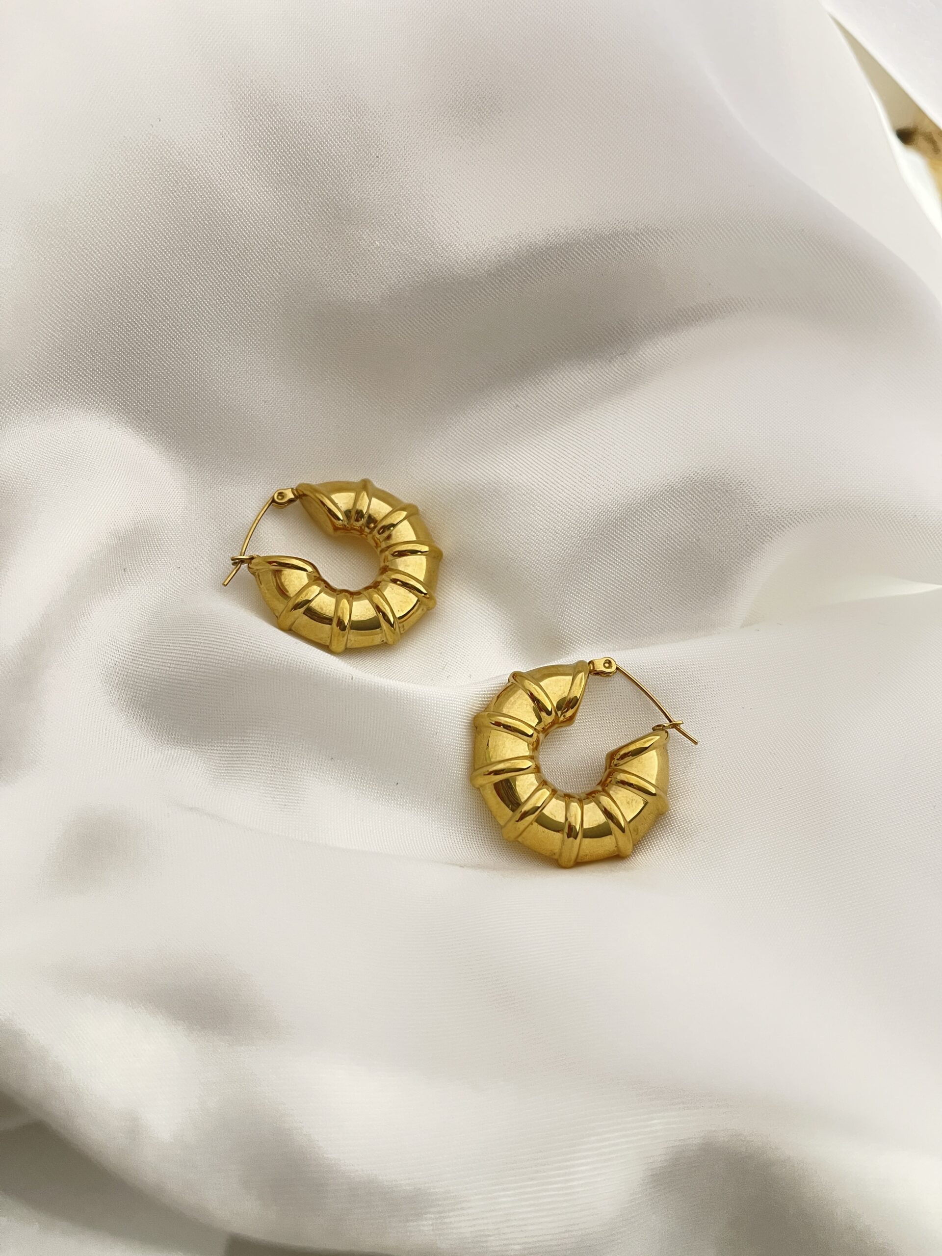 Material : Stainless Steel with 18K Gold plated, classification: Hoop Earring, Size:3cmx 2.9cm Wt:11.4g