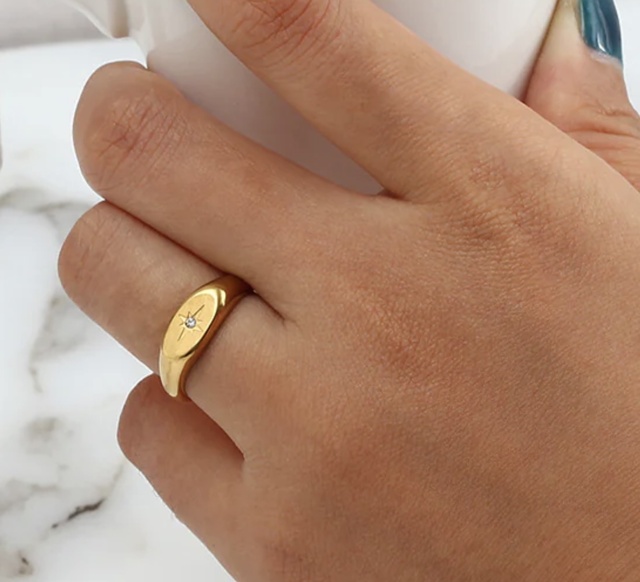 material: Stainless Steel with Zirconia, 18K Gold plated, Size 7. wt 10 gm